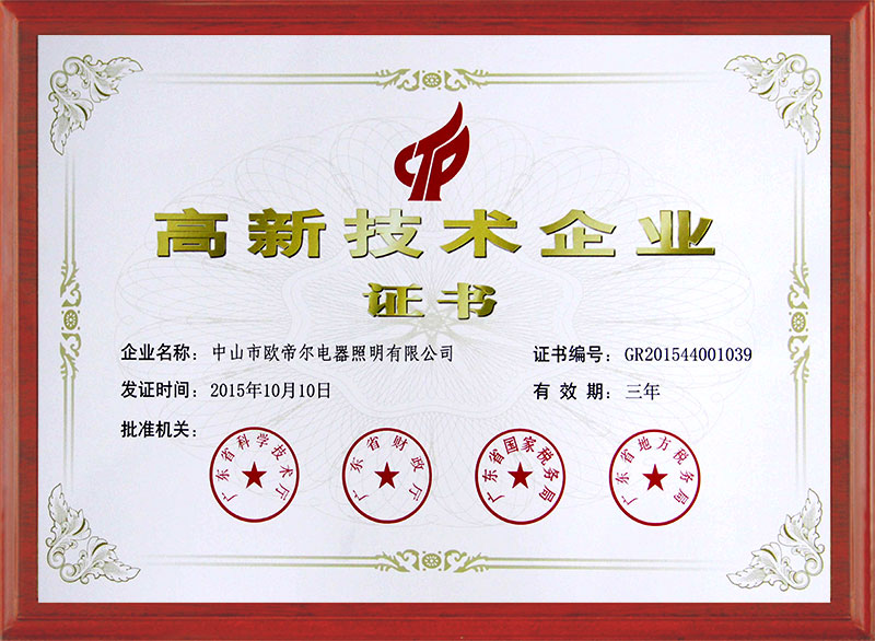 China High-Tech Enterprise Certificate