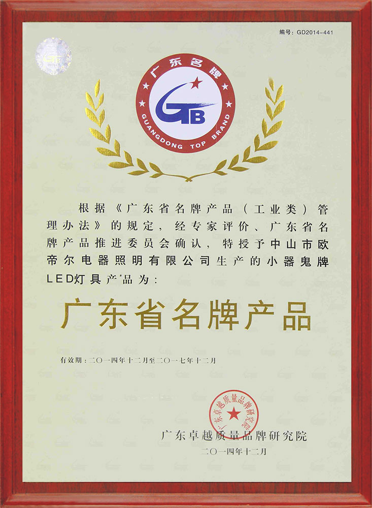 Guangdong Famous Brand Certificate